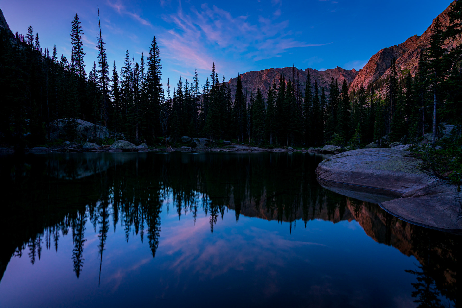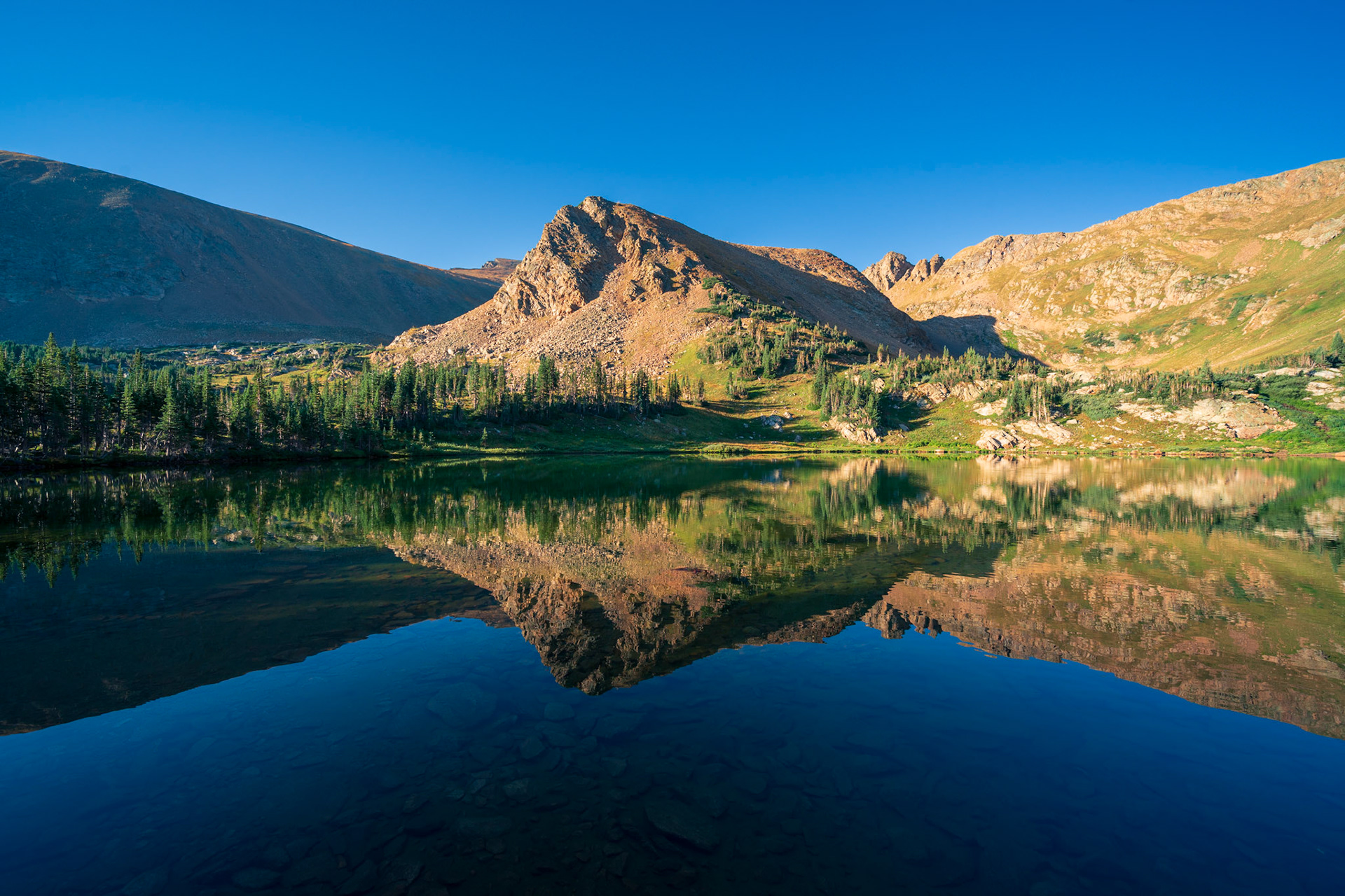 Grand Mesa, Uncompahgre and Gunnison National Forests, Although I planned to capture this scene with a vibrant alpenglow, wildfire smoke had other ideas. Disappointed, I reluctantly captured one exposure before moving on. When I looked at the capture at home, I decided that I liked the mystic feel of the lake below a nearly opaque mountain.